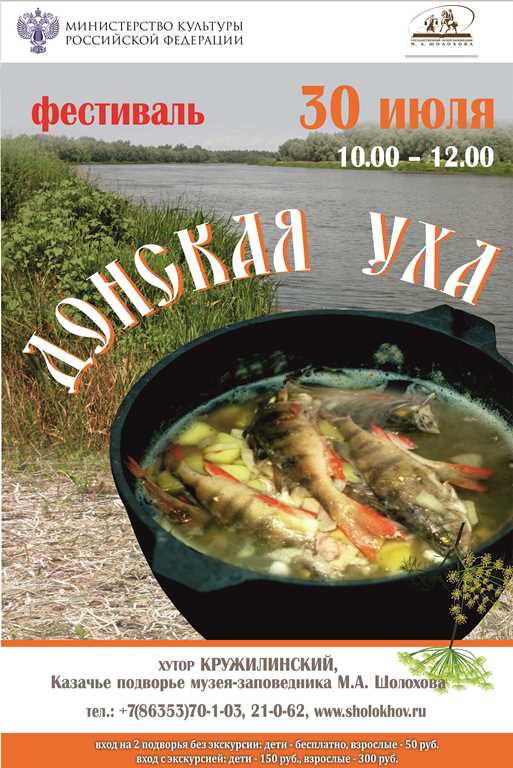 30 июля 2022 г. Музей-заповедник М.А. Шолохова приглашает всех на казачье подворье в хутор Кружилинский на фестиваль «Донская уха». Начало в 10.00.