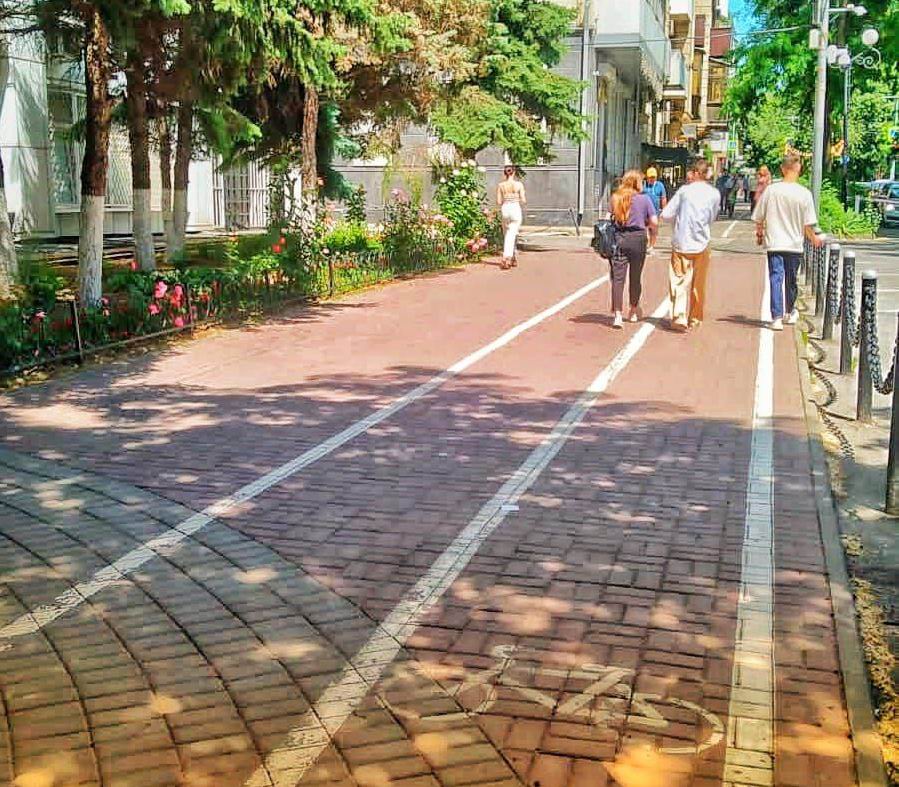 То же самое и на Пушкинской. В прошлом году здесь сделали непрерывную зону для велосипедистов. Как вы думаете, все пешеходы ушли с этих дорожек? А между тем здесь ИМЕЮТ ПРАВО ездить велосипедисты и самокатчики – и нечего возмущаться!