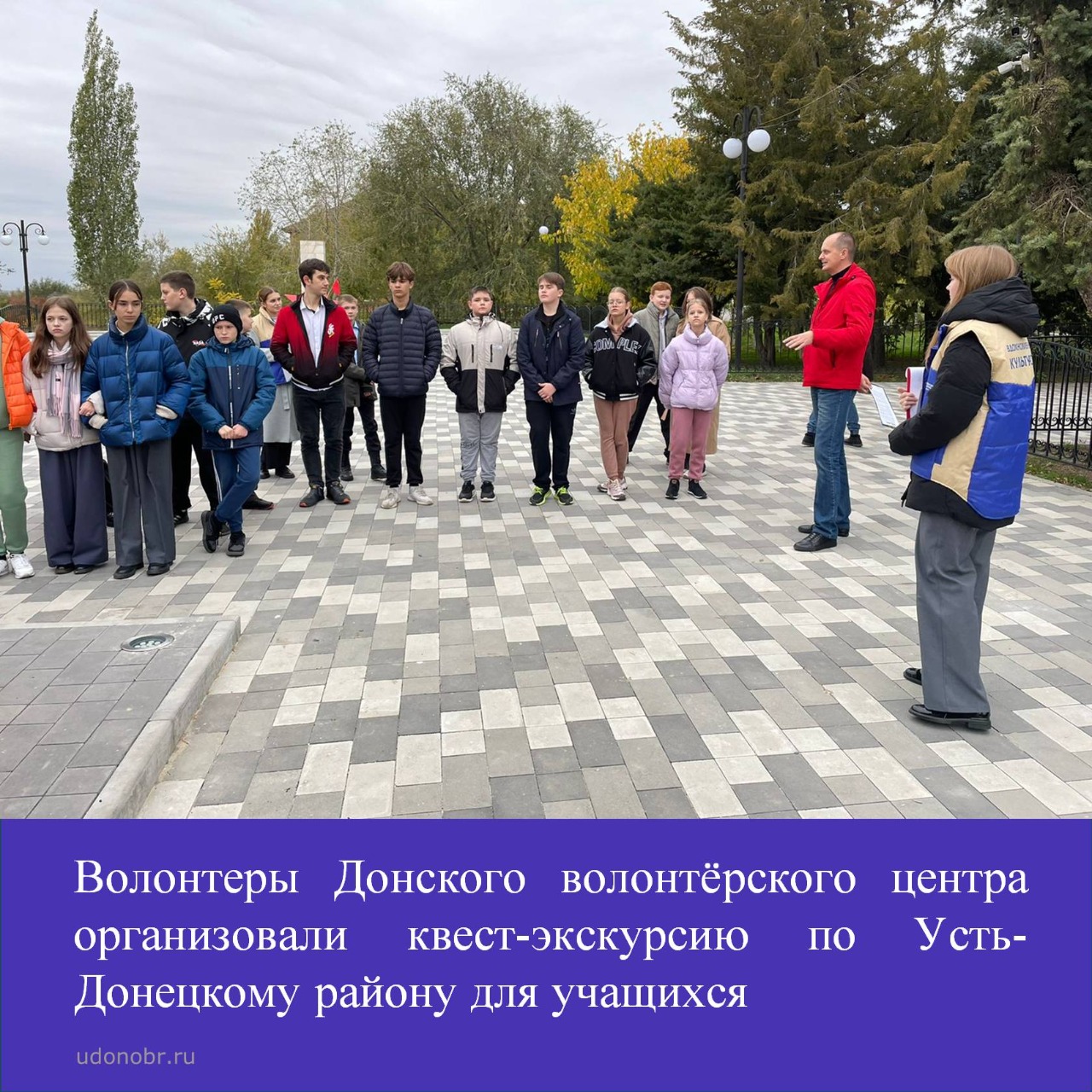 В рамках проекта «Культурная карта Дона» волонтеры Донского волонтёрского центра организовали квест-экскурсию по Усть-Донецкому району для учащихся общеобразовательных школ. Всех участников разделили на группы и раздали квест-задания согласно разработанным маршрутам.