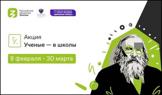 В День российской науки, 8 февраля 2023, началась всероссийская просветительская акция «Ученые — в школы», организатором которой выступает Российское общество «Знание» совместно с Министерством просвещения России, Советом при президенте Российской Федерации по науке и образованию и Российским движением детей и молодежи «Движение Первых».