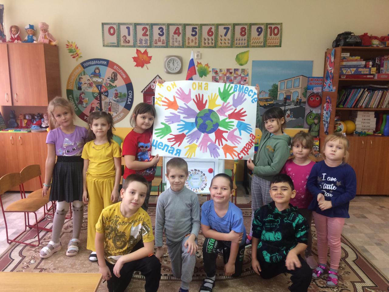 В старшей группе «Гномики» Рябинская В.И. провела увлекательное познавательное занятие «Если мы едины, мы непобедимы». На занятии дети узнали об истории возникновения праздника, расширили свои знания о Родине, о народах и национальностях, рассмотрели символику России и прослушали гимн нашей страны.