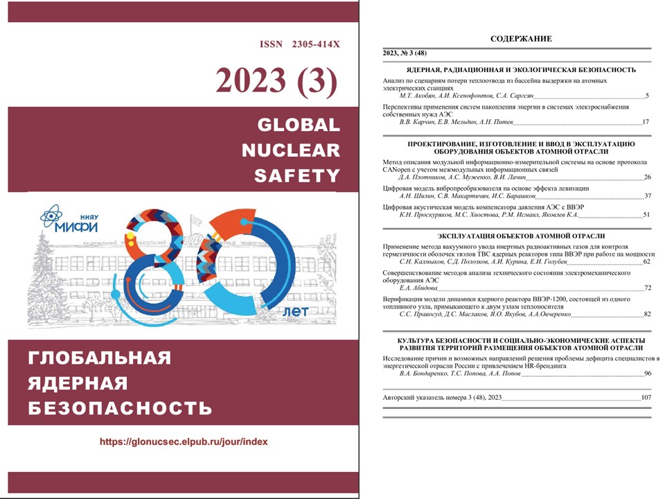 Цель журнала – представлять на страницах издания авторитетную научную информацию о современных направлениях исследований в областях, связанных с ядерной инженерией, ядерными электростанциями, ядерным топливом, радиационной безопасностью и экологией, эксплуатацией объектов атомной отрасли промышленности, а также с культурой безопасности, социально-экономическими аспектами развития территорий размещения объектов атомной отрасли.