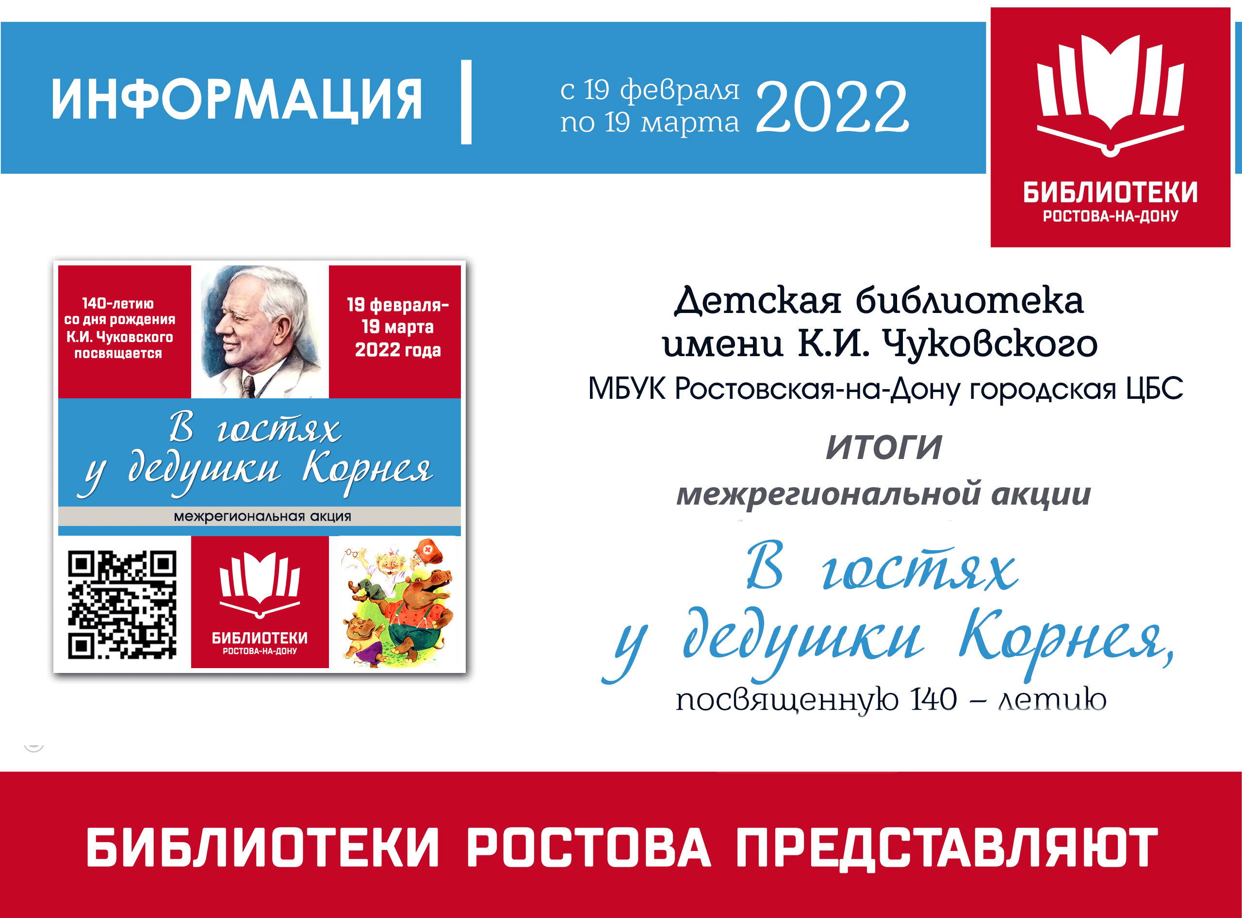 В детской библиотеке имени К. И. Чуковского завершилась Межрегиональная акция «В гостях у дедушки Корнея», посвященная 140-летию со дня рождения К. И. Чуковского.