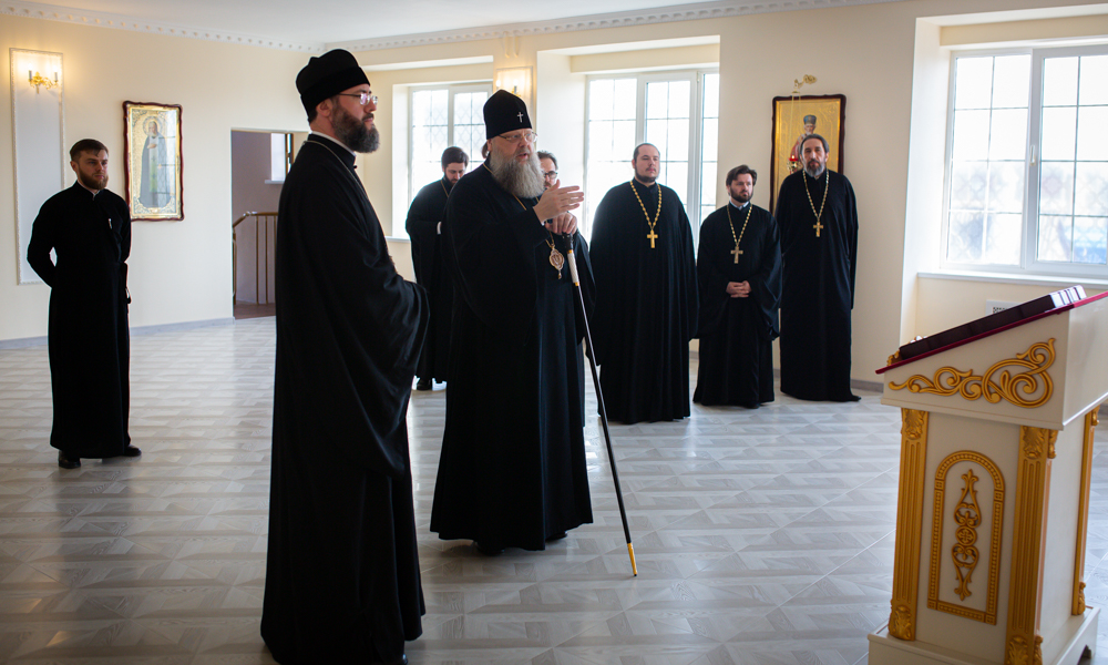 В стенах духовной школы Его Высокопреосвященство встречали ректор учебного заведения протоиерей Тимофей Фетисов, первый проректор ДДС протоиерей Григорий Гриднев, проректор по воспитательной работе иерея Алексий Осяк, а также представители профессорско-преподавательского состава и студенты семинарии.