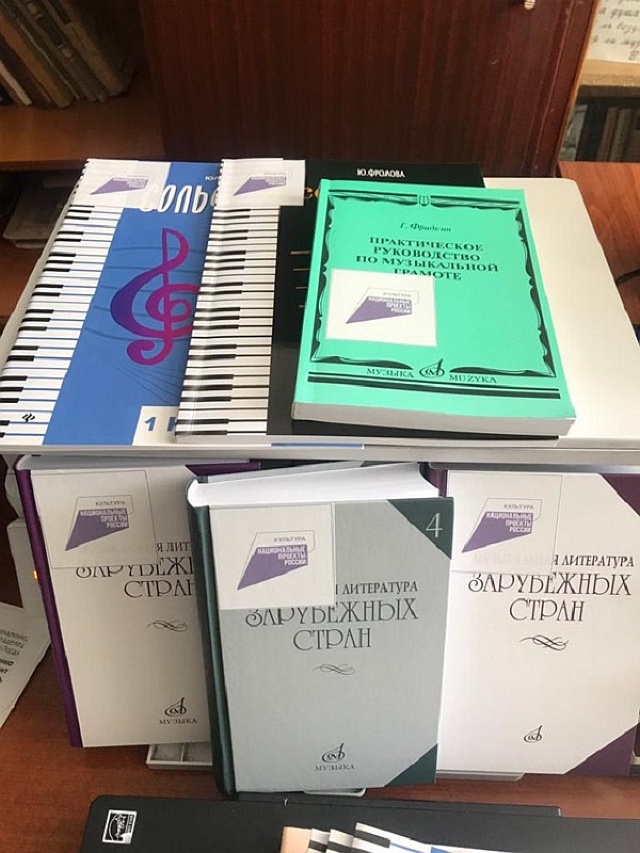 В марте и апреле 2022 года были получены музыкальные учебники и интерактивные пособия, а также нотная литература.