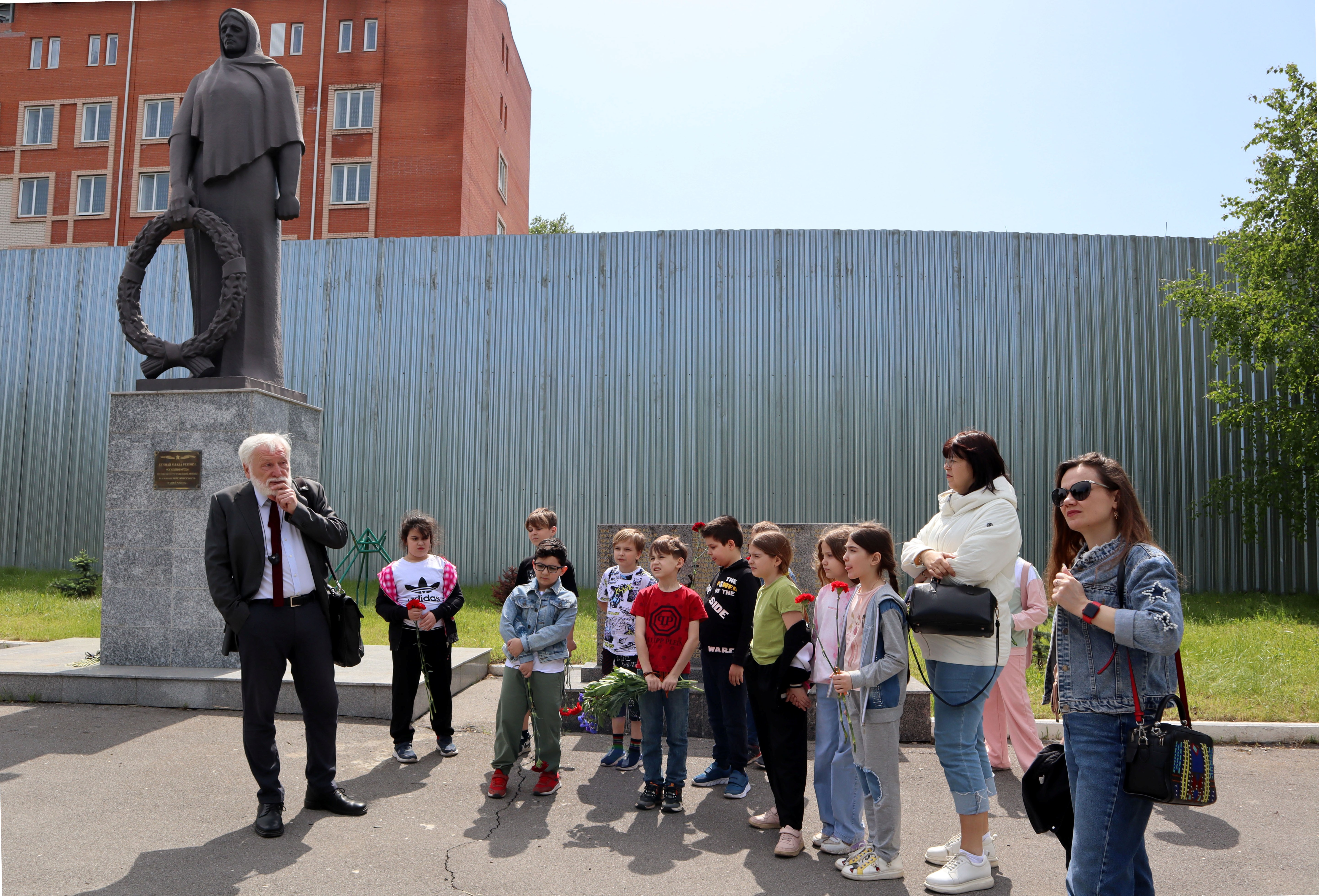 Встреча началась на территории мемориала - памятник «Скорби». Ребята возложили цветы к монументу и почтили память погибших в годы Отечественной войны минутой молчания. Известный историк председатель Ростовского регионального отделения Всероссийского общества охраны памятников истории и культуры Александр Кожин рассказал собравшимся о событиях 1942-1943 гг., когда была вторая оккупация Ростова-на-Дону и о том, откуда появилось это место массового захоронения советских мирных граждан и солдат.