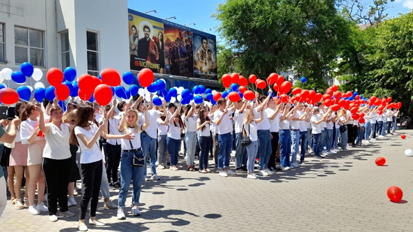 В завершении мероприятия обучающиеся образовательных учреждений с шарами в руках цветов триколора выстроились в колонну, образовав слово «Россия».
