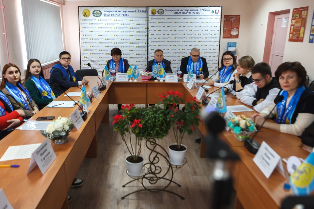 Со стороны Таганрогского института имени А.П. Чехова (филиала) РГЭУ (РИНХ) во встрече участвовали заместитель директора по учебной и воспитательной работе Светлана Анатольевна Петрушенко; заместитель директора по научной работе и проектной деятельности Алексей Александрович Волвенко; декан ФЭиП Ирина Александровна Стеценко; декан ФИиФ Валентина Анатольевна Агеева; начальник отдела воспитательной и профориетационной работы, организационного сопровождения деятельности и развития карьеры Оксана Алексеевна Липовая; директор филиала Российского общества «Знание» в Ростовской области Жанна Сергеевна Метелкина; начальник отдела информационного сопровождения образовательной деятельности и цифровой трансформации Евгения Владимировна Ящук; начальник отдела организации и сопровождения научной деятельности Тамара Ирановна Просандеева; руководитель СНО института Оксана Николаевна Филиппова; заведующий кафедрой педагогики и социокультурного развития личности Ирина Викториновна Челышева; профессор кафедры педагогики дошкольного, начального и дополнительного образования Марина Алексеевна Пуйлова, заведующий кафедрой общей педагогики Ольга Александровна Кочергина; заведующий кафедрой информатики Ирина Анатольевна Тюшнякова; сотрудники отдела воспитательной и профориентационной работы, организационного сопровождения деятельности и развития карьеры: Барсегян Альберт Мельсикович, Иванова Ольга Андреевна, Дуракова Алена Николаевна.