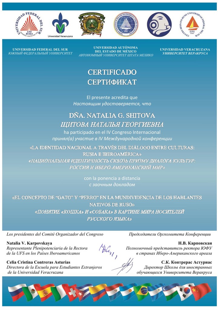 21 ноября в рамках работы лаборатории МКиМПИЯ доценты кафедры английского языка факультета иностранных языков Н.Г. Щитова и А.Н. Савицкая приняли участие в Международной научно-практической конференции «Национальная идентичность сквозь призму диалога культур: Россия и иберо-американский мир», которая проходила в гибридном формате: на площадках Южного федерального университета (г. Ростов-на-Дону) и на платформе MS Teams.