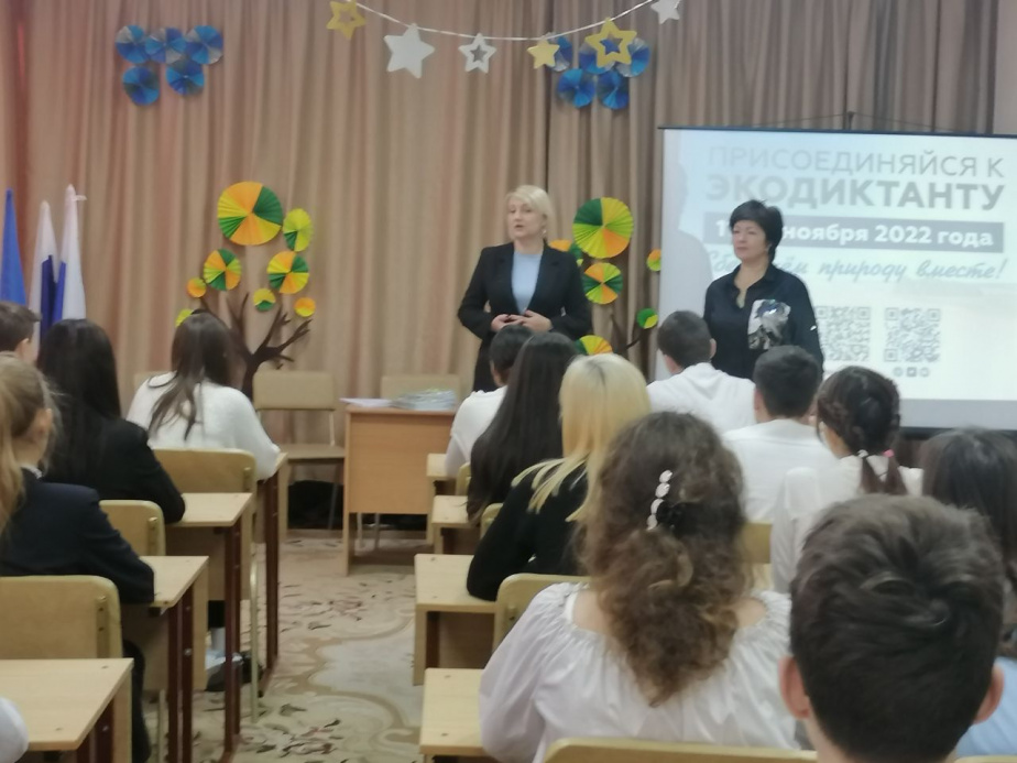 Мероприятие проводится с 11 по 27 ноября в офлайн и онлайн-режимах. 15 ноября на базе Центра детского эколого-биологического состоялся Всероссийский экологический диктант, в котором приняли участие более 50 учащихся школ №4 и №2. Ребят приветствовала заместитель министра природных ресурсов и экологии Ростовской области Алла Владимировна Кушнарева.