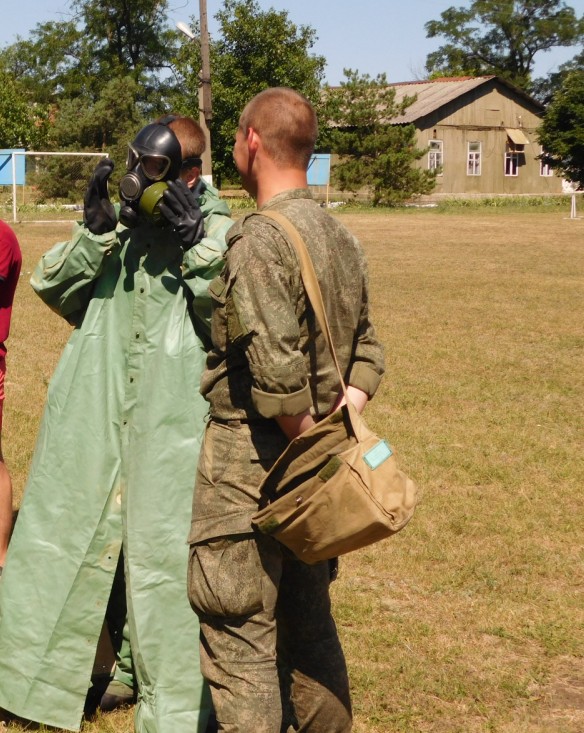 В 9.30 начались занятия в воинской части. Студенты на практике отрабатывали навыки владения оружием, надевания противогазов и ОЗК. В конце занятия каждому студенту была выставлена оценка.