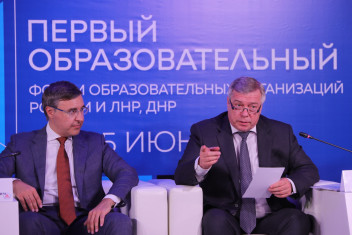 Губернатор Ростовской области Василий Голубев вместе с министром науки и высшего образования РФ Валерием Фальковым поприветствовал участников открывшегося сегодня, 3 июня, в Ростове-на-Дону первого форума образовательных организаций России, Луганской и Донецкой народных республик.
