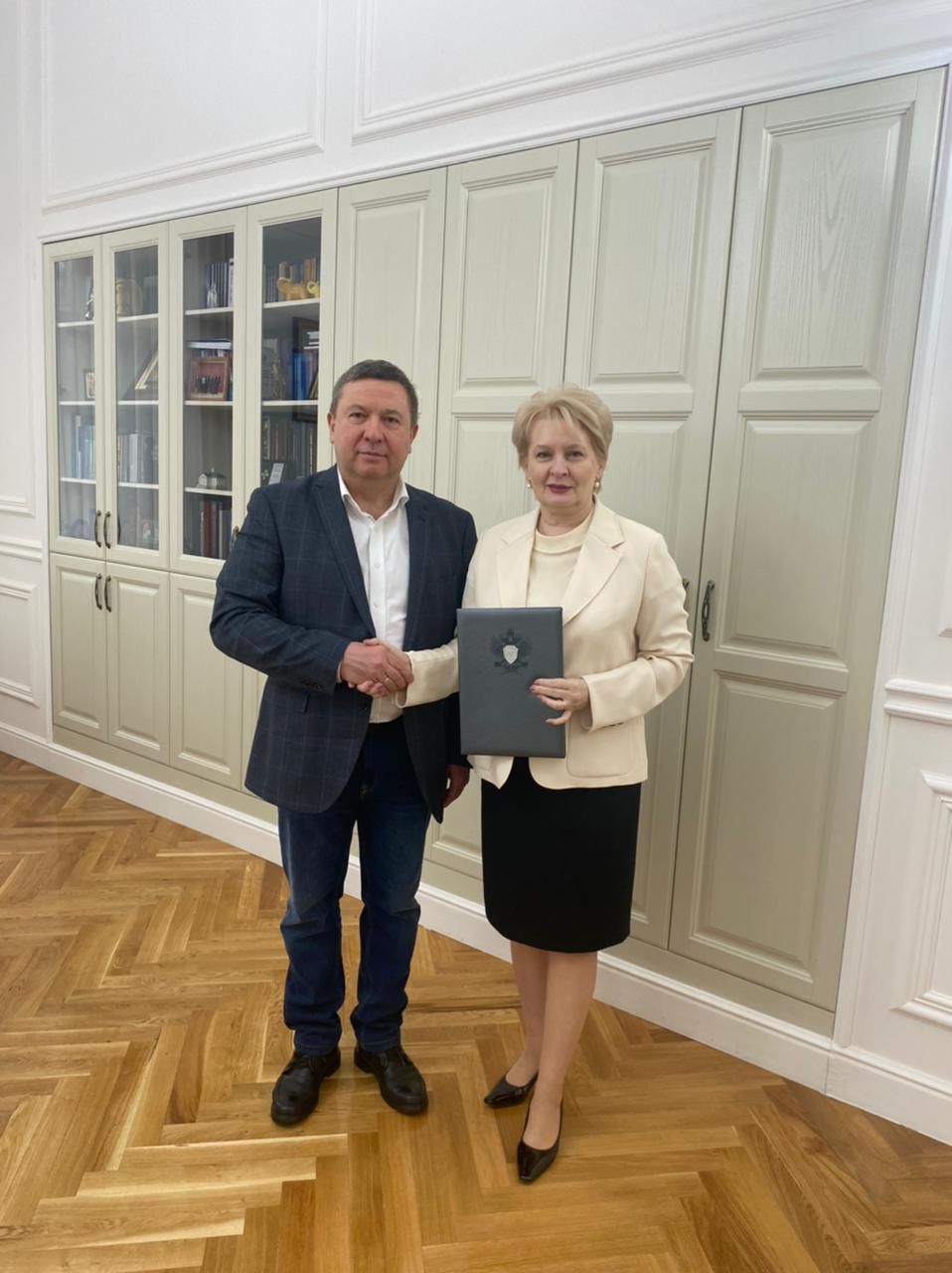 Руслан Григорьевич вручил ректору РГЭУ (РИНХ) Елене Макаренко от имени заместителя генерального директора – исполнительного директора АО «Рособоронэкспорт» Олега Маркеева поздравление с Днем Российской науки.