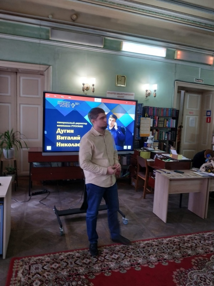 С помощью яркой и наглядной презентации Владимир рассказал старшеклассникам о главном, на его взгляд, секрете успеха в любой деятельности - о непрерывном самообразовании, а также о роли книги в этом процессе.