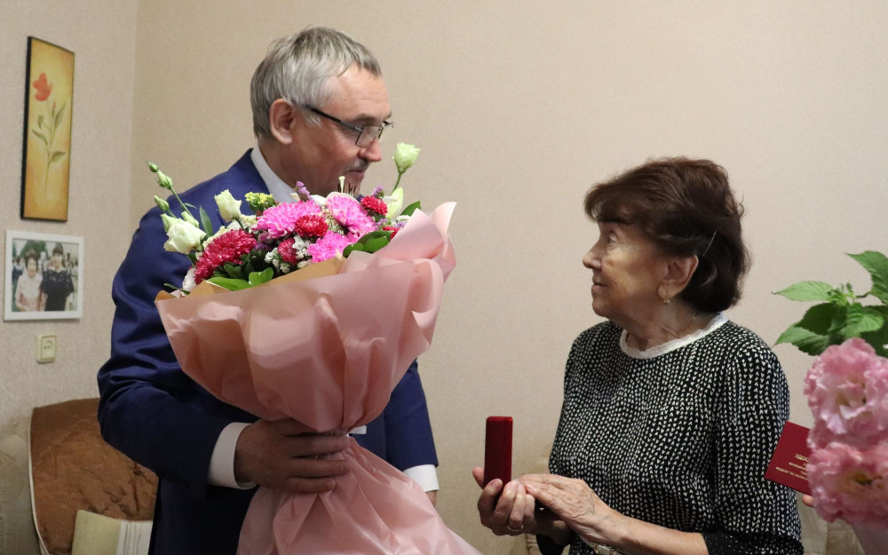 Глава администрации г.Шахты Андрей Горцевской и исполняющий обязанности председателя городской Думы-главы города Шахты Константин Корнеев вручили Лине Алексеевне медаль.