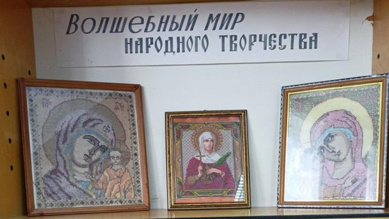 Автор выставки – Татьяна Кленина. Заинтересовавшись в интернете техникой бисероплетения и вышивки бисером, она пошла на курсы в школу искусств микрорайона Октябрьский. Первыми ее работами были иконы, затем деревья из бисера и украшения. Технику бисероплетения мастерица сочетает с вязанием крючком.