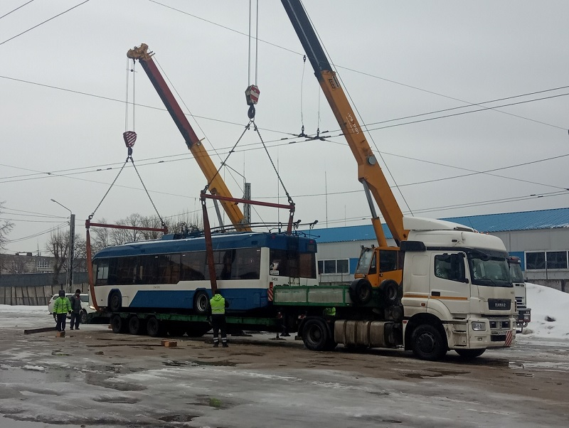 Автор фотографий написал, что он стал свидетелем отгрузки сразу 5 троллейбусов. На трейлеры их водрузили с помощью автокранов.