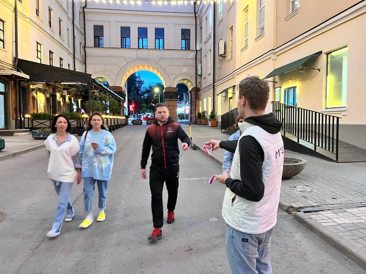 Молодогвардейцы вышли на улицы города и раздали прохожим ленточки в цветах флага РФ, тем самым отдавая долг памяти российскому празднику.