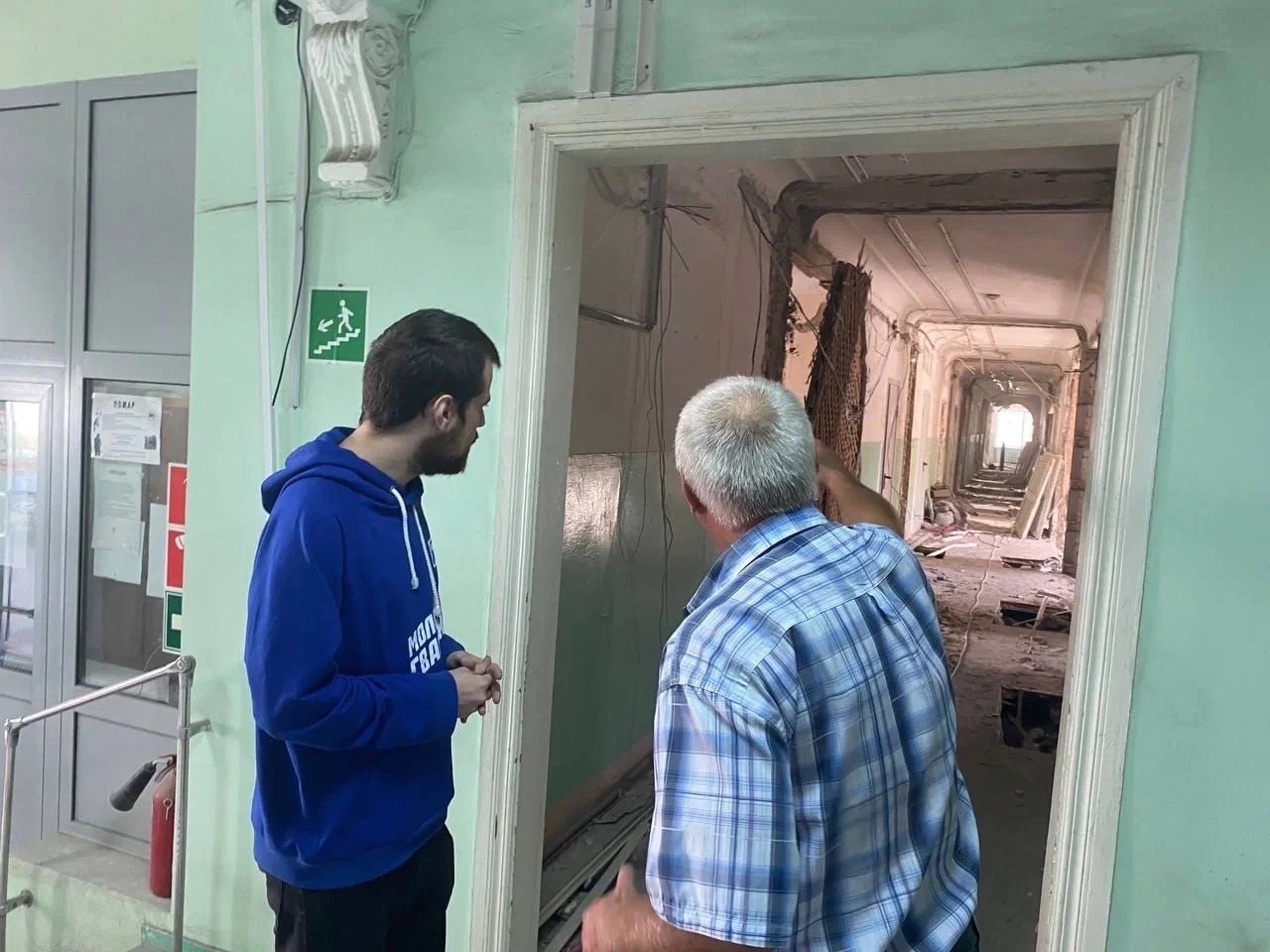 В ходе проверки Молодогвардейцы отметили, что работа ведётся в соответствии с планом и не стоит на месте. При прошлом посещении проводились демонтажные работы, которые сохраняются и по сегодняшний день. Здание общежития аварийное и не пригодно для проживания, стены и полы раздроблены, а также продолжается очистка от строительного мусора.