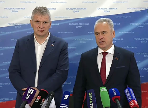 В среду, 14 декабря, перед началом пленарного заседания Госдумы состоялся пресс-подход фракции КПРФ. Перед журналистами выступили депутаты-коммунисты Е.И. Бессонов и А.В. Куринный.