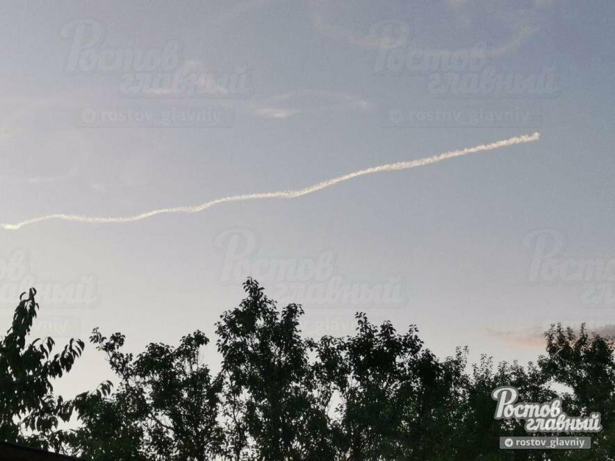 О звуке, похожем на взрыв, сообщили пользователи соцсетей из Донецка и Каменска-Шахтинского. Они прислали в городские паблики фото и видеозаписи, на которых в небе виден белый след.