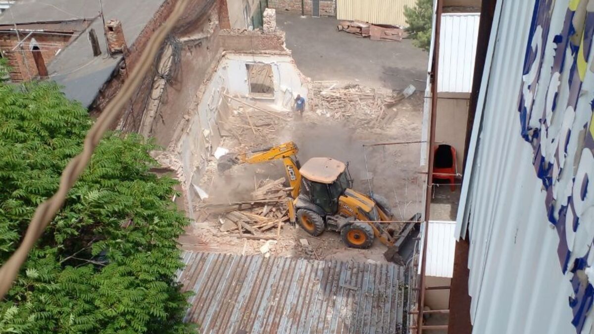 Общественники получили фотографии сноса флигеля, отснятые неравнодушной ростовчанкой, сообщившей о демонтаже дома за зданием на Большой Садовой, 97. Там ранее располагался магазин детских игрушек «Катюша».