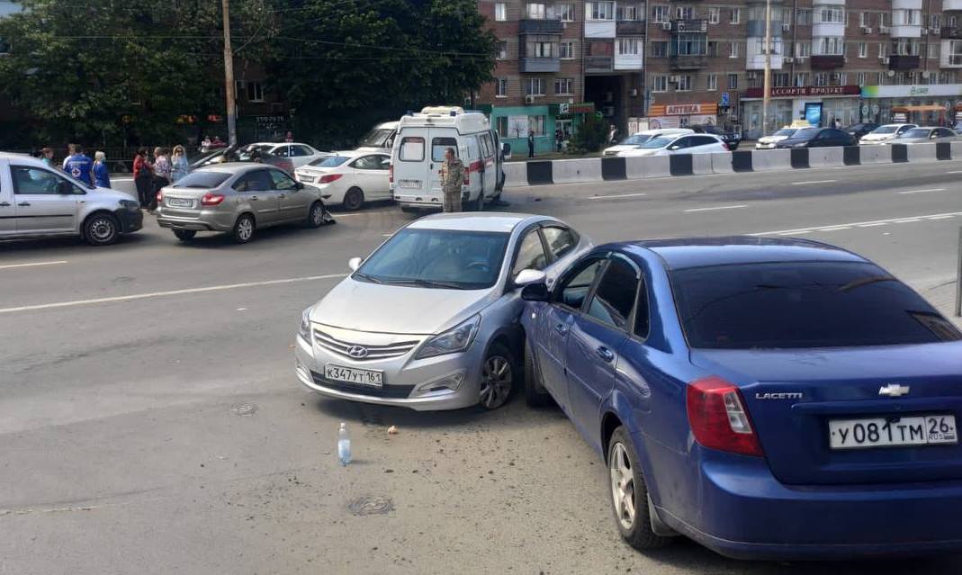 Авария случилась в 14-25 в Ростове на проспекте Нагибина. По предварительной информации, водитель автомобиля «Hyundai Solaris» при повороте направо к парковке торгового центра со второй полосы движения не убедился в безопасности маневра. Он столкнулся с автомобилем скорой помощи, который ехал с включенными спецсигналами. От удара машину скорой помощи отбросило на три попутных автомобиля. А «Hyundai Solaris» врезался в еще одну легковушку.