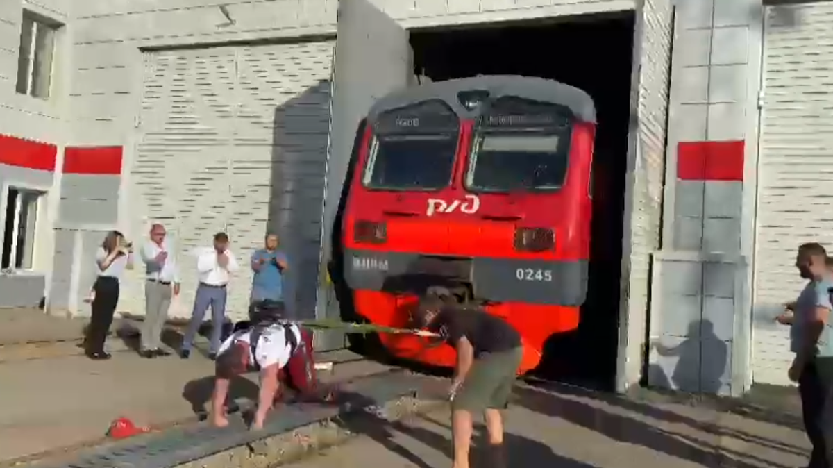 В Шахтах атлет установил мировой рекорд, протащив электропоезд весом 402 тонны