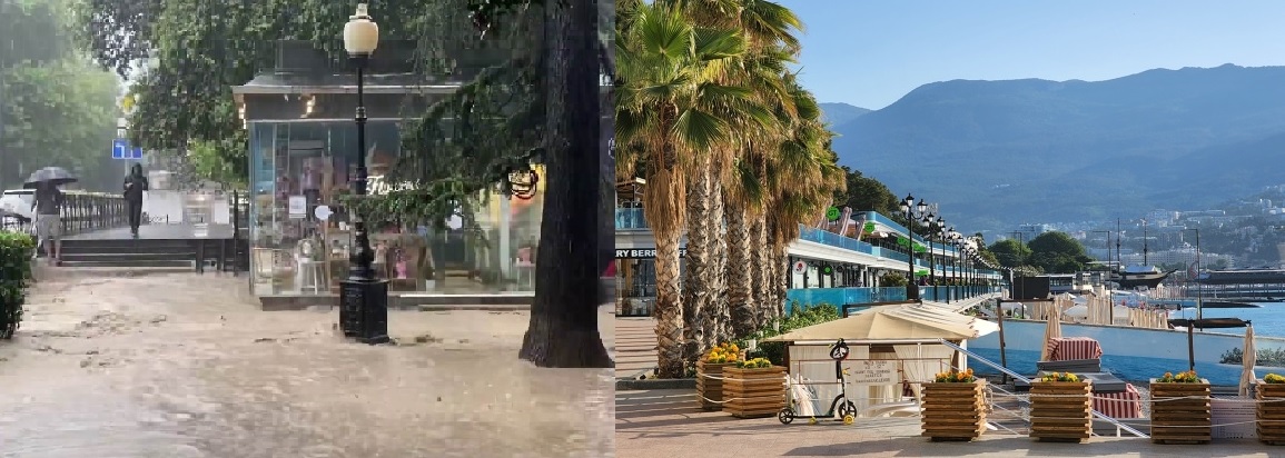 А вот ялтинцы делятся в соцсетях фотографиями того трудного дня, что-то снимали и наши коллеги, а сегодня мы побывали в этих местах, и скомпоновали по принципу "было/стало":