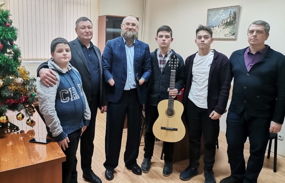 В таганрогское местное отделение партии «Единая Россия» за своим новым музыкальным инструментом Михаил пришел вместе с двумя братьями – Давидом и Даниилом, которые тоже не остались без подарков – им вручили книги. Также вся семья получила разнообразные сладости к чаю.