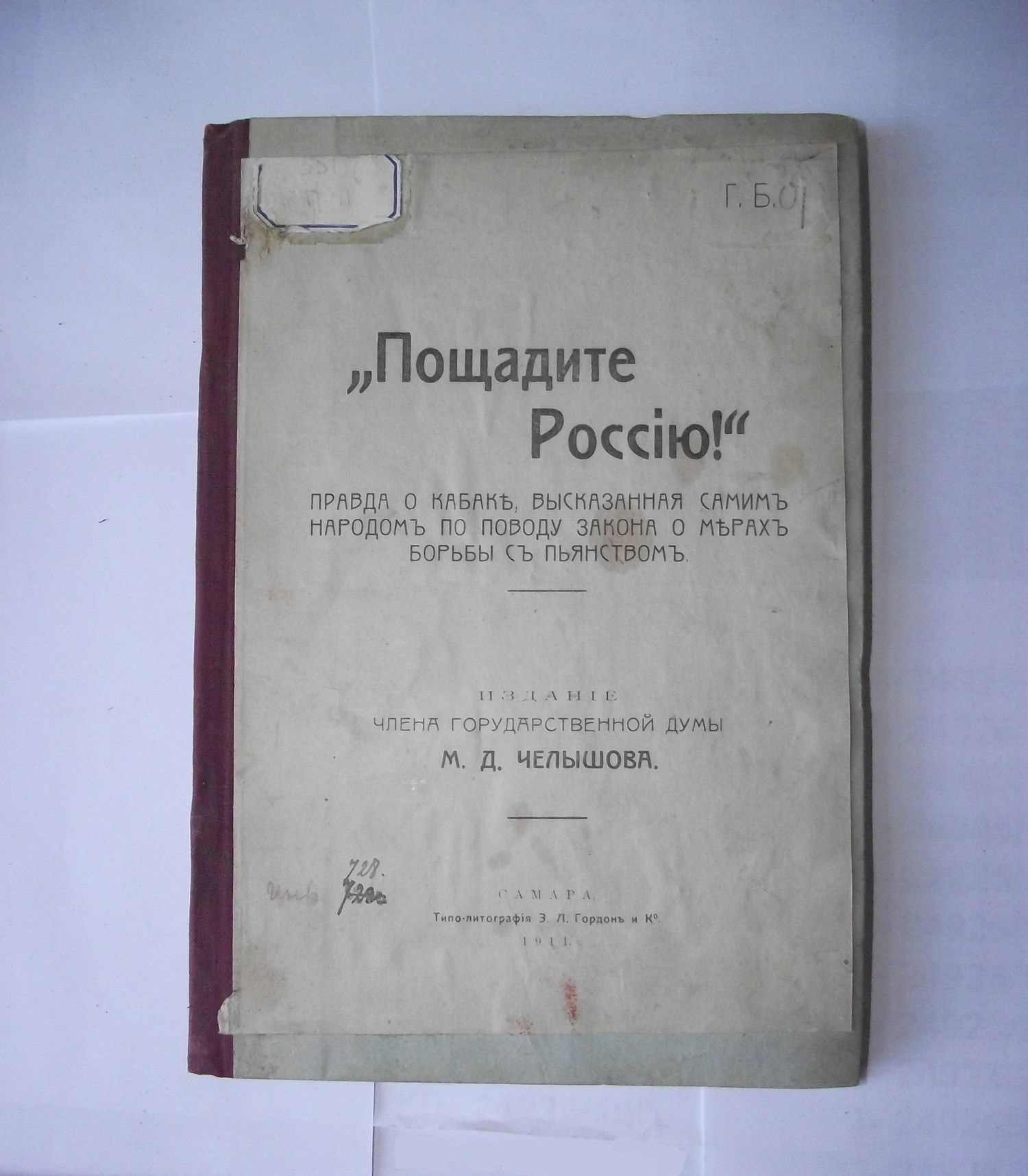 В редком книжном фонде музея истории донского казачества хранится любопытное издание «Пощадите Россию! Правда о кабаке, высказанная самим народом по поводу закона о мерах борьбы с пьянством», выпущенное в Самаре в 1911 году. Автор Михаил Дмитриевич Челышов — член Государственной думы Российской империи III созыва от Самарской губернии, член партии «Союз 17 октября», городской голова Самары, выдающийся деятель трезвенного движения в России. Челышов был известен как решительный противник продажи спиртных напитков и винокурения, выступал на эту тему в Государственной Думе с запоминающимися речами.