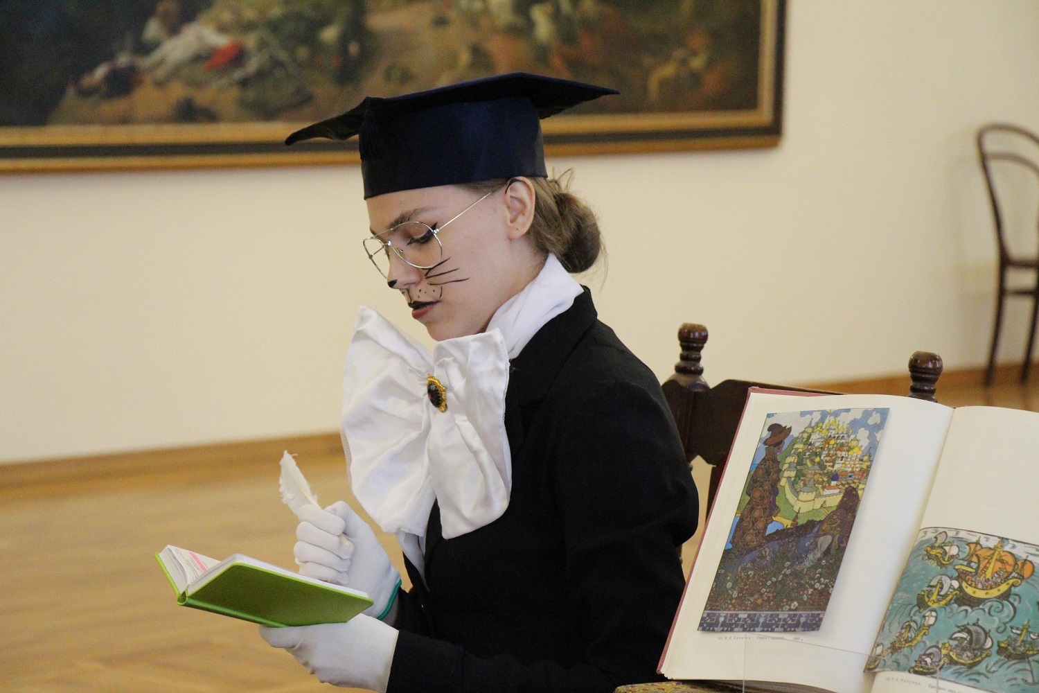 Гости города, а также воспитанники воскресной школы Свято-Троицкого прихода совершили необычное путешествие в мир сказок А.С. Пушкина вместе с Котом учёным. Волшебный дуб подарил участникам не только невероятные факты о произведениях великого поэта, но и испытал ребят на эрудицию, находчивость и знания. А в завершение программы Кот учёный приготовил юным гостям мастер-класс по оформлению тематической закладки.