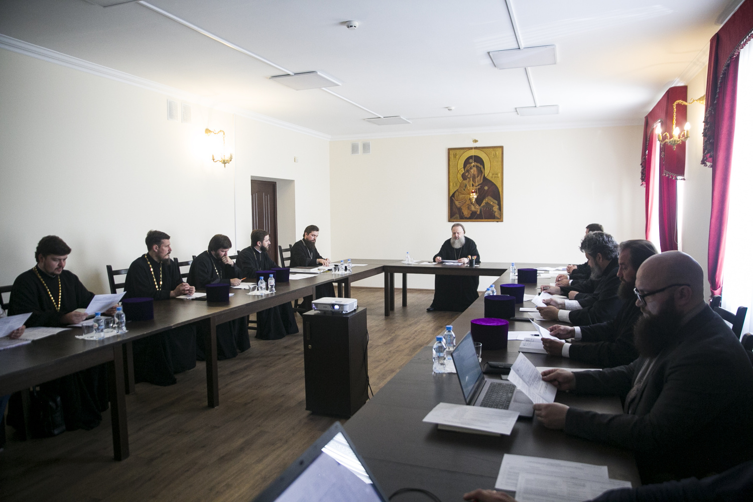 В совещании приняли участие викарий Ростовской епархии епископ Таганрогский Артемий, секретарь Епархиального управления Ростовской-на-Дону епархии иерей Димитрий Болотаев, секретарь Главы Донской митрополии по городу Ростову-на-Дону протоиерей Иоанн Осяк, руководитель Епархиального отдела по взаимодействию с Вооруженными Силами и правоохранительными учреждениями протоиерей Валерий Волощук, руководитель Епархиального отдела по работе с казачеством протоиерей Георгий Сморкалов, руководитель Епархиального информационного отдела протоиерей Даниил Азизов, проректор по воспитательной работе Донской духовной семинарии иерей Алексий Осяк, руководитель Протокола Главы Донской митрополии иерей Владимир Осяк, настоятель Ростовского кафедрального собора Рождества Пресвятой Богородицы иерей Леонтий Дмитриев, пресс-секретарь Главы митрополии Игорь Петровский, староста Кафедрального собора Петр Колобаев.