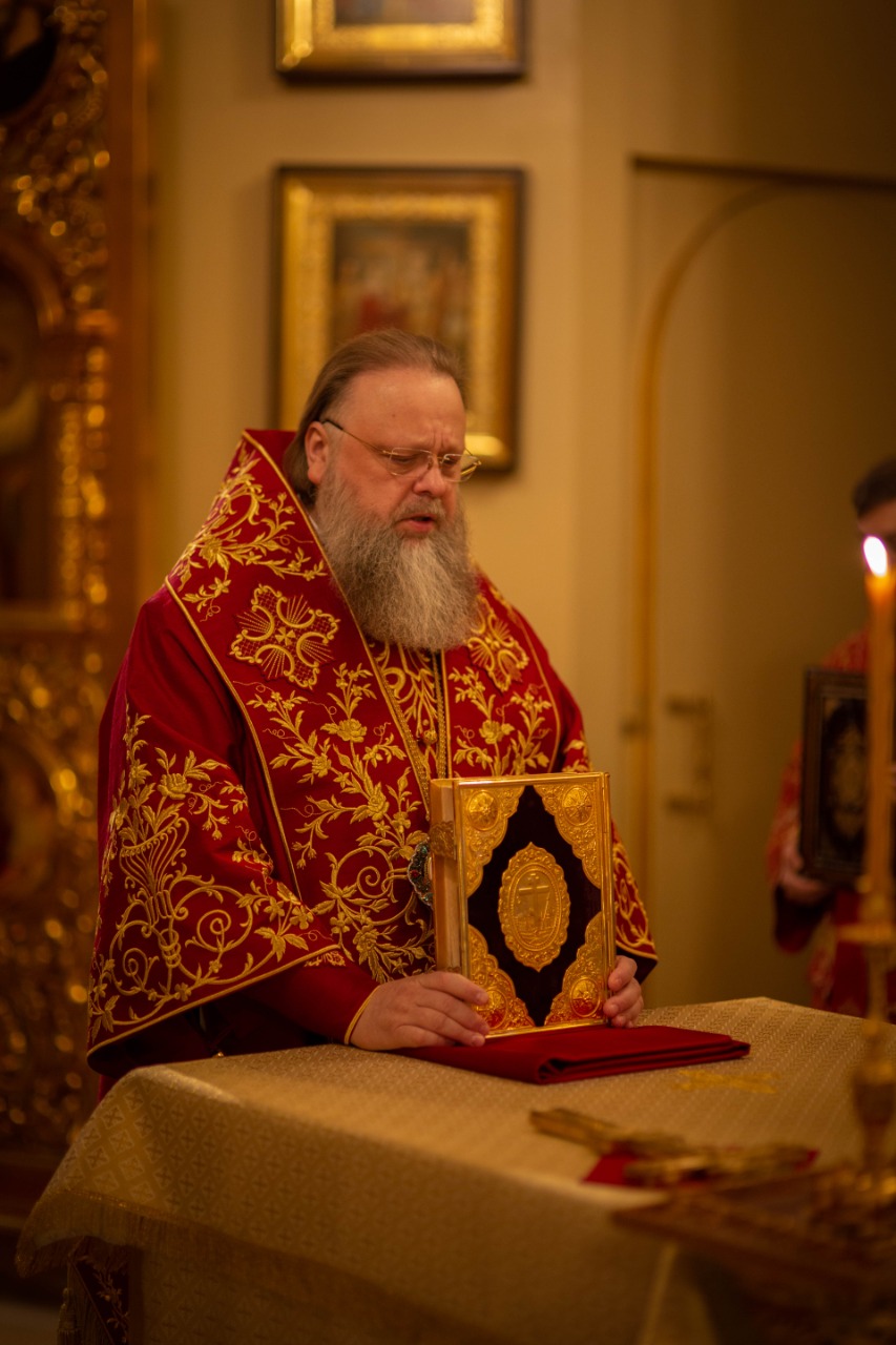 Его Высокопреосвященству сослужили настоятель собора иерей Леонтий Дмитриев, а также клирик храма иерей Александр Слабодин.