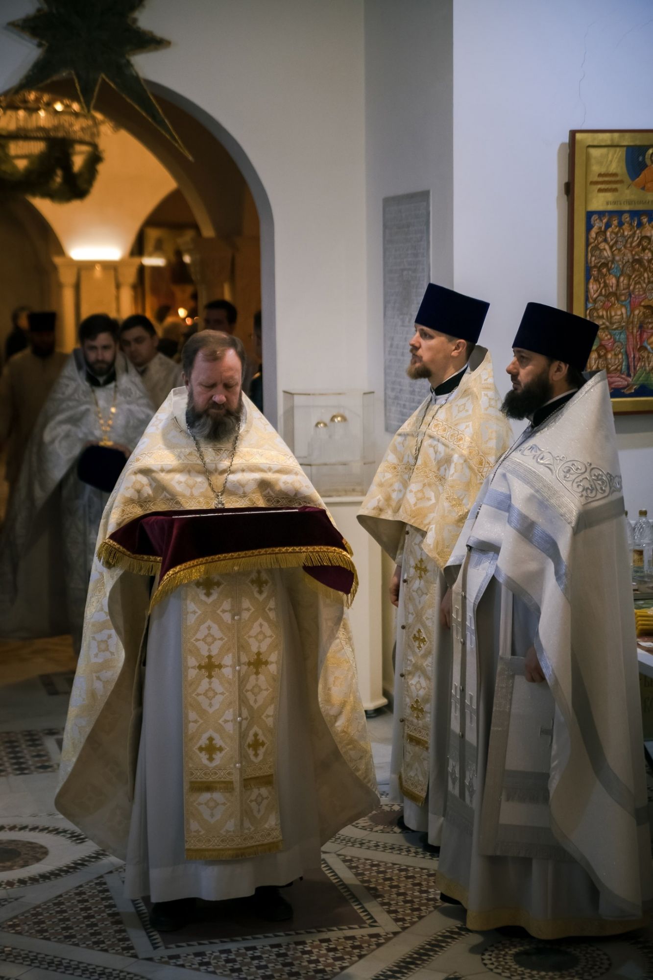 Обращаясь к молящимся с архиерейским словом, владыка митрополит сказал: «Поздравляю вас с навечерием Богоявления, днем, когда мы открываем для себя праздник явления Господа на Иордане совершенно иначе, вчитываясь в строки из Священного Писания, и предуготовляя себя к принятию той великой святыни, которой является освященная вода. Мы совершаем освещение воды в память того события, когда Господь пришел и исполнил иудейский древний обычай омовения. Он исполнил его так, как обычно исполняли язычники, приходящие к единой вере - не просто умывая лицо, но опускаясь в воду Иордана полностью, тем самым как бы заново рождаясь. Нужно ли это было Господу? Конечно, нет! Но Он, как человек, показал для собравшихся вокруг, что Он такой же, как и все; что Он так же делает все то, что надлежит делать народу. Крещение Христово, бывшее началом своим как крещение Иоанново, крещение покаяния, возродило человеческий род, потому что отверзлись небеса и сошел Святой Дух на Него в виде голубя, «И се, глас с небес глаголющий: Сей есть Сын Мой возлюбленный, в Котором Мое благоволение» (Мф. 3:17). Явилась Святая Троица народу Божию, и открылось новое служение Христа... Пусть эта благодать Божия, которая коснулась вод иорданских, освященных нами, просвещает и жизнь, и душу, и всякое благое дело, совершаемое нами лично или сугубо в нашем обществе» .