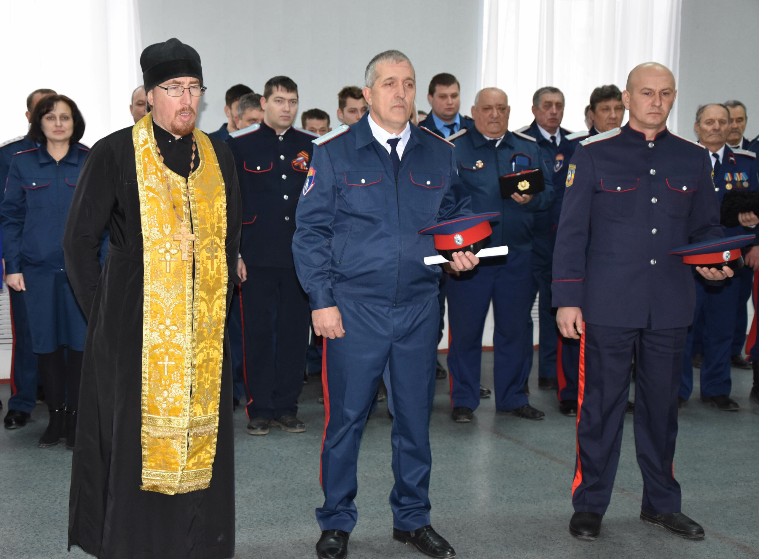 Казачий круг начался с торжественного построения и молитвы протоиерея Романа Белоусова.