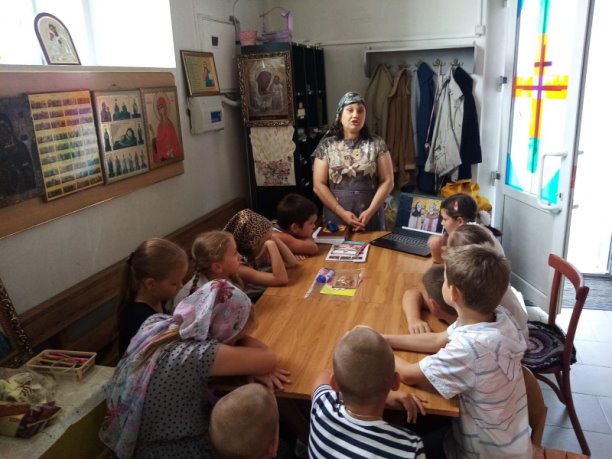 10 июля работником Константиновской районной библиотеки им.Ф.П. Крюкова на КИБО, для воспитанников воскресной школы и прихожан храма Преображение Господне была проведена православная беседа ” Любви и веры – образец”.