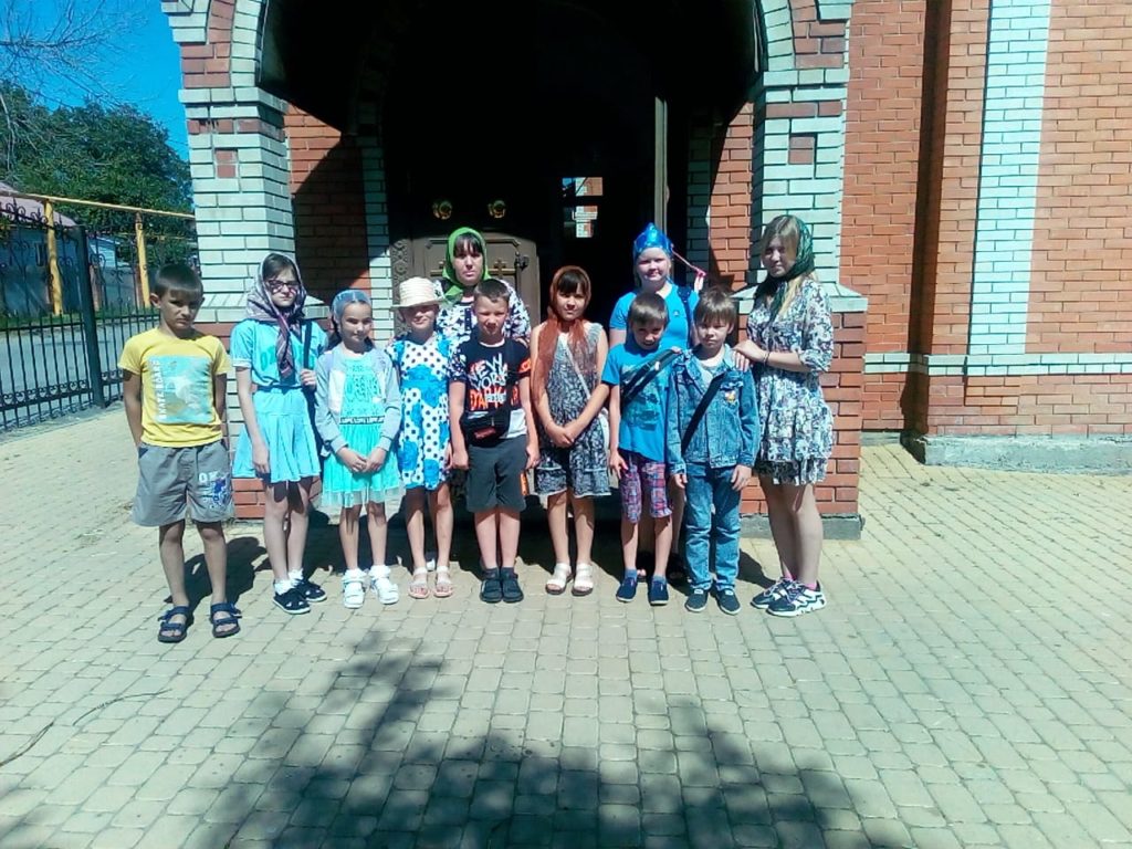 Экскурсию провела помощник Благочинного Донецкого округа по религиозному образованию Фартанова Раиса Ивановна. Она рассказала экскурсантам об истории храма, его внутреннем устройстве и убранстве. Ребята узнали, что притвор — это самая первая часть здания за входными дверями.