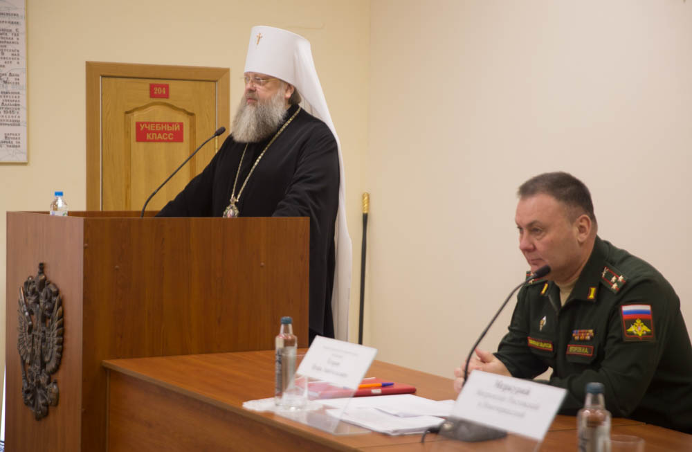 Перед церемонией награждения владыка митрополит выступил с приветственным словом к собравшимся, в котором поблагодарил сотрудников военкоматов, потрудившихся в работе с военнослужащими.
