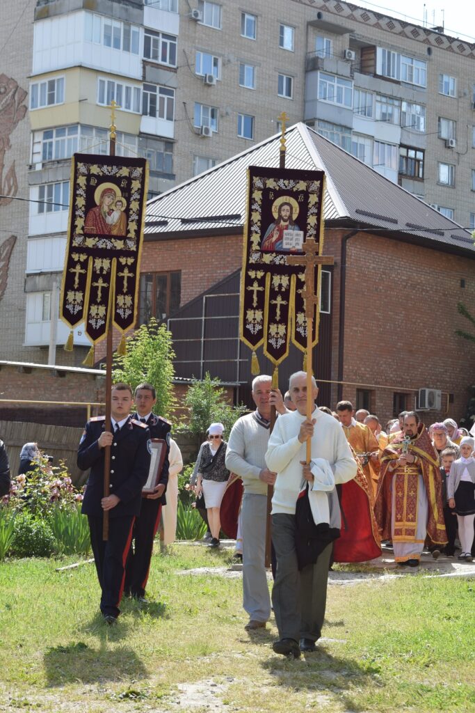 По окончании литургии был совершен крестный ход. Шествие было поистине торжественным. По окончании богослужения отец Димитрий поблагодарил священников и прихожан храма: «Я всех вас поздравляю с этим праздником, который является не только церковным, но и государственным. Имея таких святых небесными покровителями, можно только радоваться и славить Господа, что Он сподобил быть такому собору в нашем городе и дал всем нам возможность здесь возносить наши молитвы. Благодаря письменности, принесенной на славянские земли равноапостольными братьями, не только были переведены и распространены у нас святые Евангелия, но и началось полноценное развитие государственности славянских народов, в том числе — и на Руси. Возникли те самые духовные скрепы, послужившие фактором объединения людей не только вокруг Церкви, но и вокруг государства и власти. В этот день мы молимся за здравие всего православного мира и благосостояние нашего государства. Храни вас всех Господь и Матерь Божия!»