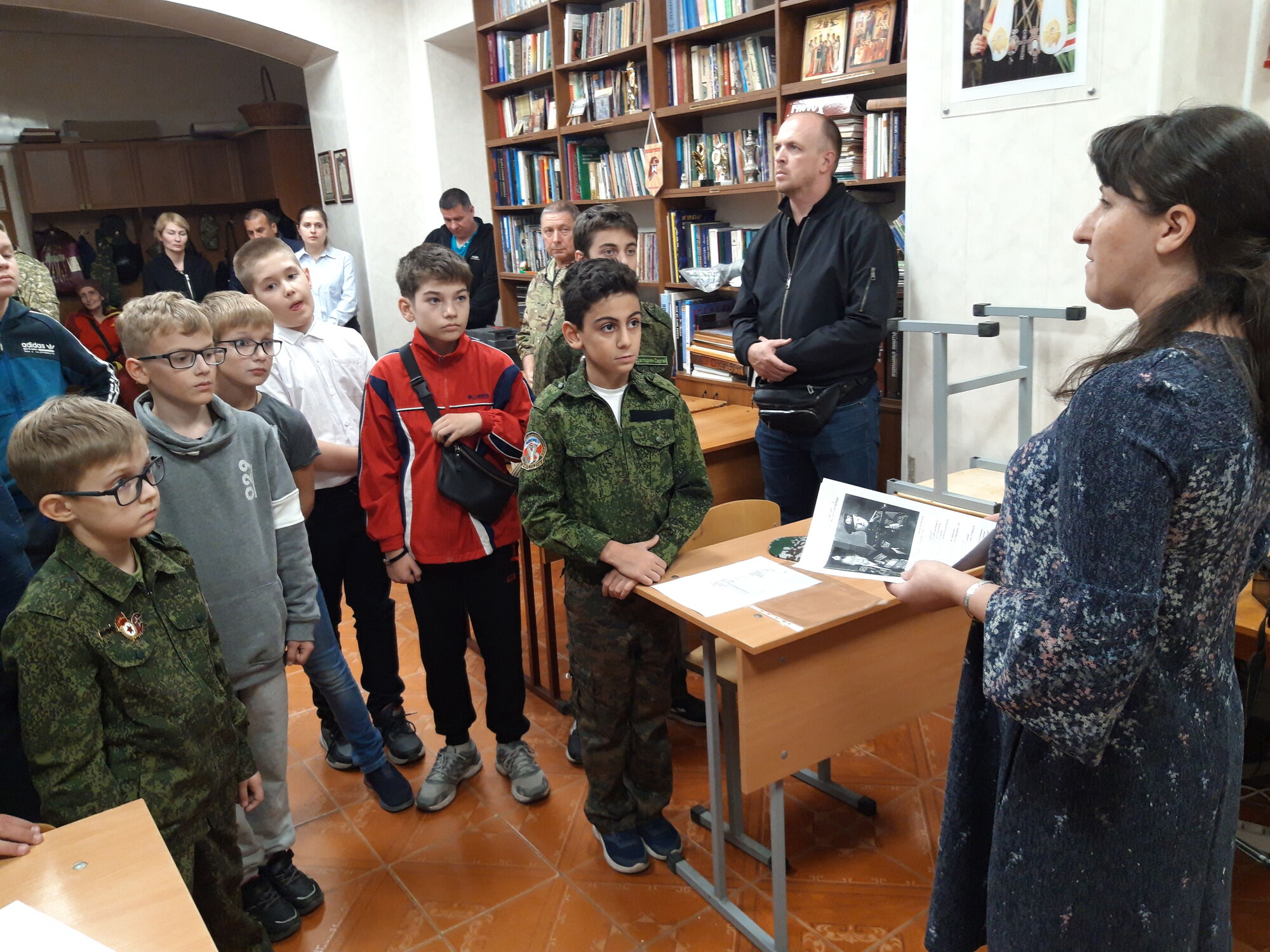 На базе приходской воскресной школы храма Святого Георгия Победоносца (главного православного воинского храма ЮВО) по благословению настоятеля прихода протоиерея Валерия Волощука организованы занятия «Уроки мужества» по