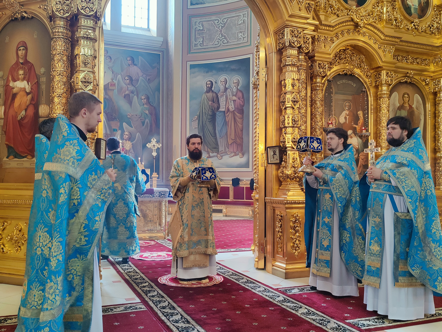 Его Преосвященству сослужили: настоятель собора иерей Леонтий Дмитриев и клирики собора. Диаконский чин возглавил диакон Николай Лысиков.