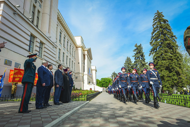 Мероприятие с участием Василия Голубева, представителей исполнительной власти региона, студентов, воспитанников казачьих кадетских корпусов, казаков Всевеликого войска Донского и конников, участвующих в «Марше победителей»,