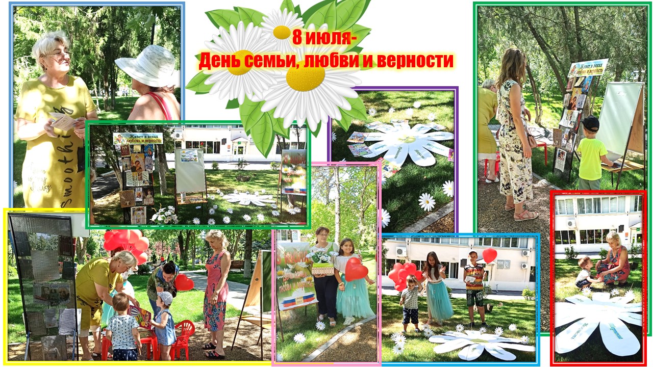 8 июля 2022 года перед зданием библиотеки была оформлена красочная фотозона «Ромашковая поляна». Вниманию всех прохожих была предложена книжная выставка «Живет в веках любовь и верность» с литературой об истории возникновения праздника, о житиях святых Петра и Февронии, стихи и проза о любви и семейных отношениях. Участникам акции была также презентована выставка-развал журналов и брошюр о том, как построить и сохранить семейные отношения, сохранить здоровье и создать тепло и уют в доме и др. Не остались без внимания самые маленькие участники акции, для них была организована арт-зона «Читаем, рисуем, фантазируем». Малыши с удовольствием раскрашивали героев своих любимых мультфильмов, а ребята постарше делали наброски на мольберте. Присутствующим были розданы экскурс-буклеты «День святых Петра и Февроньи», шары и свечи в форме сердец. Все остались довольны!