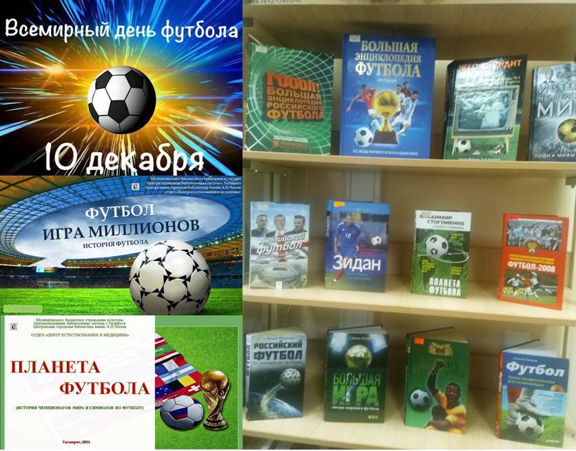 Ежегодно 10 декабря по решению Организации Объединенных Наций (ООН) неформально отмечается Всемирный День футбола. В этот день отдел «Центр естествознания и медицины» ЦГПБ имени А. П. Чехова провел день информации «Вселенная футбола», на котором были представлены тематические презентации: «Футбол - игра миллионов» - посвящена истории футбола и «Планета футбола» посвящена истории чемпионатов мира по футболу, эмблемам и символом в разные времена проведения чемпионатов и книжной выставке «Футбольный бум».