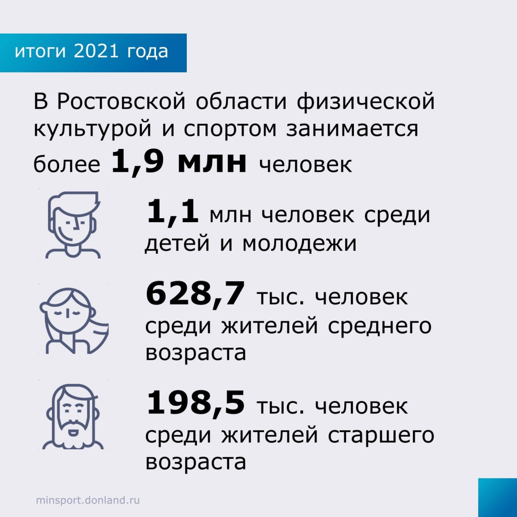 По итогам 2021 года физической культурой и спортом занимается более 50,3% от общего числа жителей Донского края.