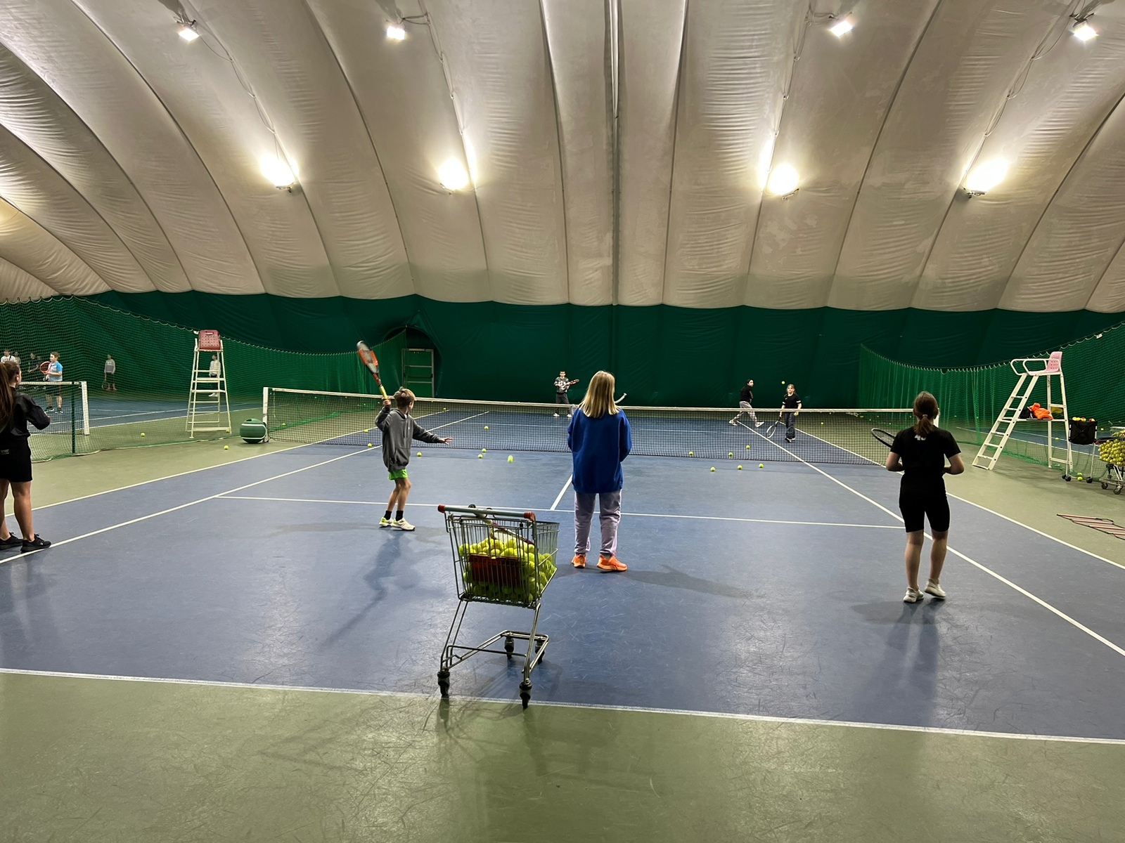 Группа юных теннисистов 2009-210 г.р. под руководством тренера Олега Дерябкина проводит первое январское занятие.