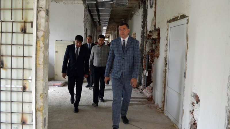 Работы на территории больничного комплекса идут активно, однако с некоторым отставанием от графика. Подрядчик практически отремонтировал больничный пищеблок и перешел в основное здание больницы. Работы проходят на всех этажах: специалисты усиливают плиты перекрытия, прокладывают сети электроосвещения и воздуховоды, демонтируют старые перегородки и возводят новые.