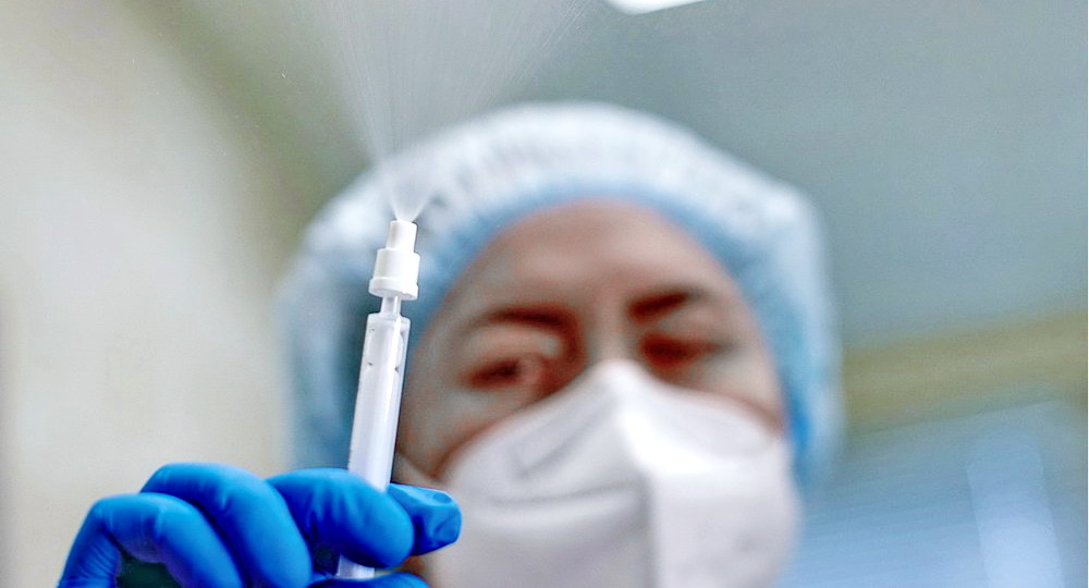 Первым регионом, где начали прививать назальной вакциной, стала Курская область. При этом никакой самодеятельности: препарат вводит медсестра. / фото: Михаил Терещенко/ТАСС