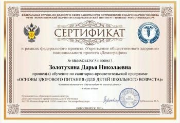 В МБОУ «Школа № 83» был проведен урок для обучающихся 11 класса, в ходе которого дети просмотрели видеоролики об основах здорового питания, разработанное ФБУН «Новосибирский НИИ гигиены» Роспотребнадзора, а также прошли онлайн тестирование и получили сертификаты об успешном прохождении обучения.